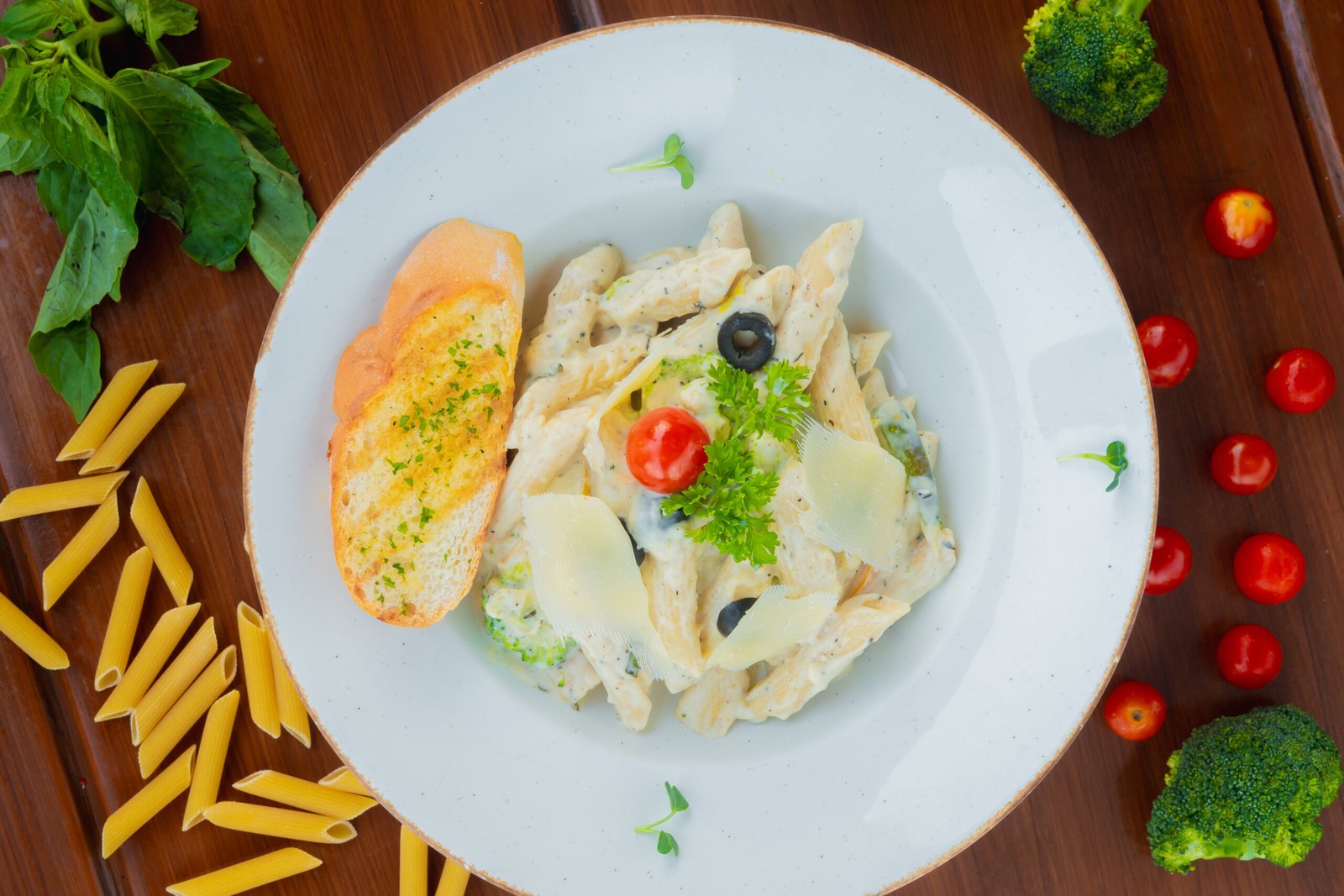 SERVED WITH TOASTED GARLIC BREAD PENNE, SPAGHETTI