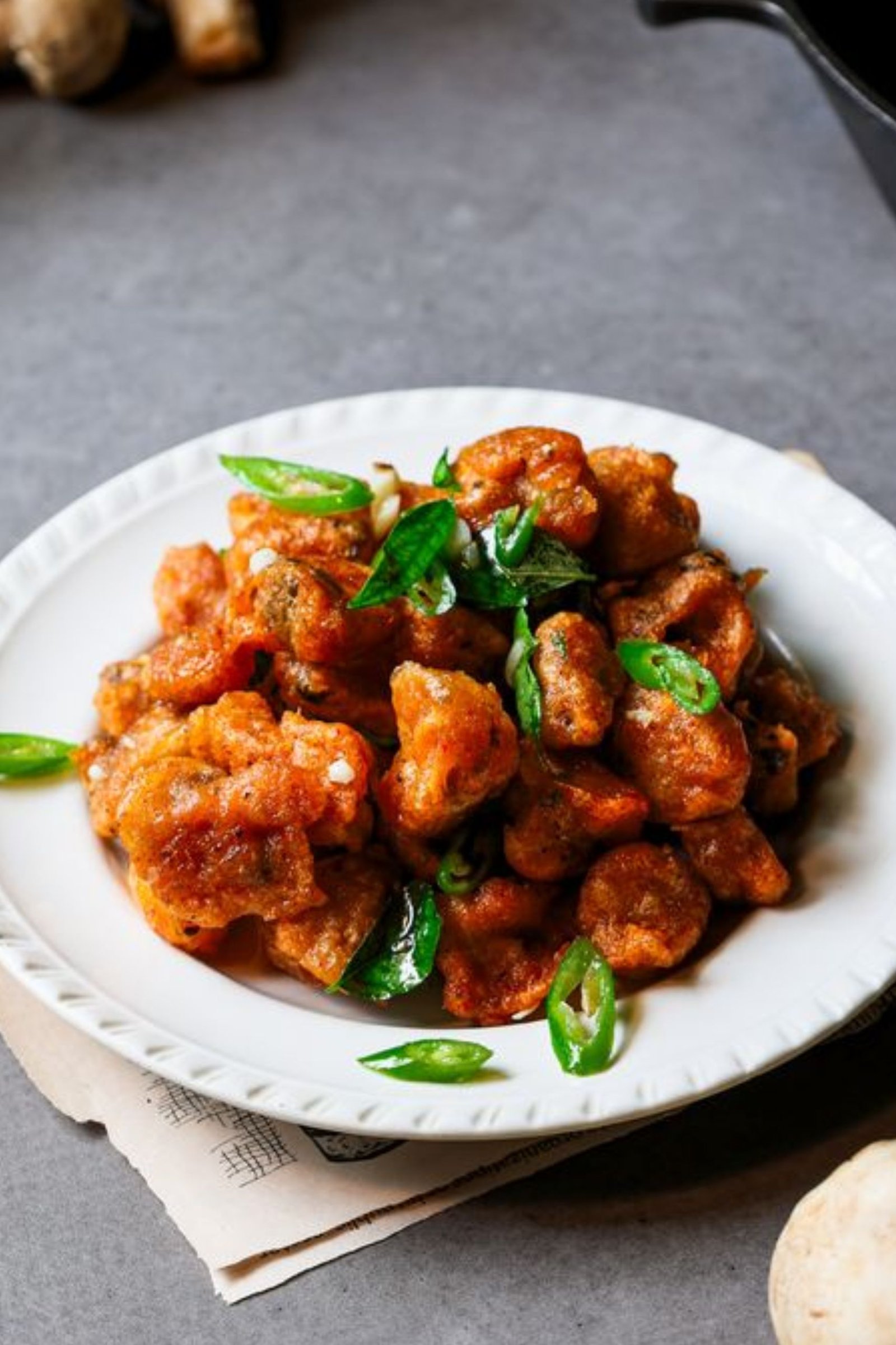 MUSHROOMS STUFFED WITH CHEESE, MARINATED IN TANDOORI MASALA,