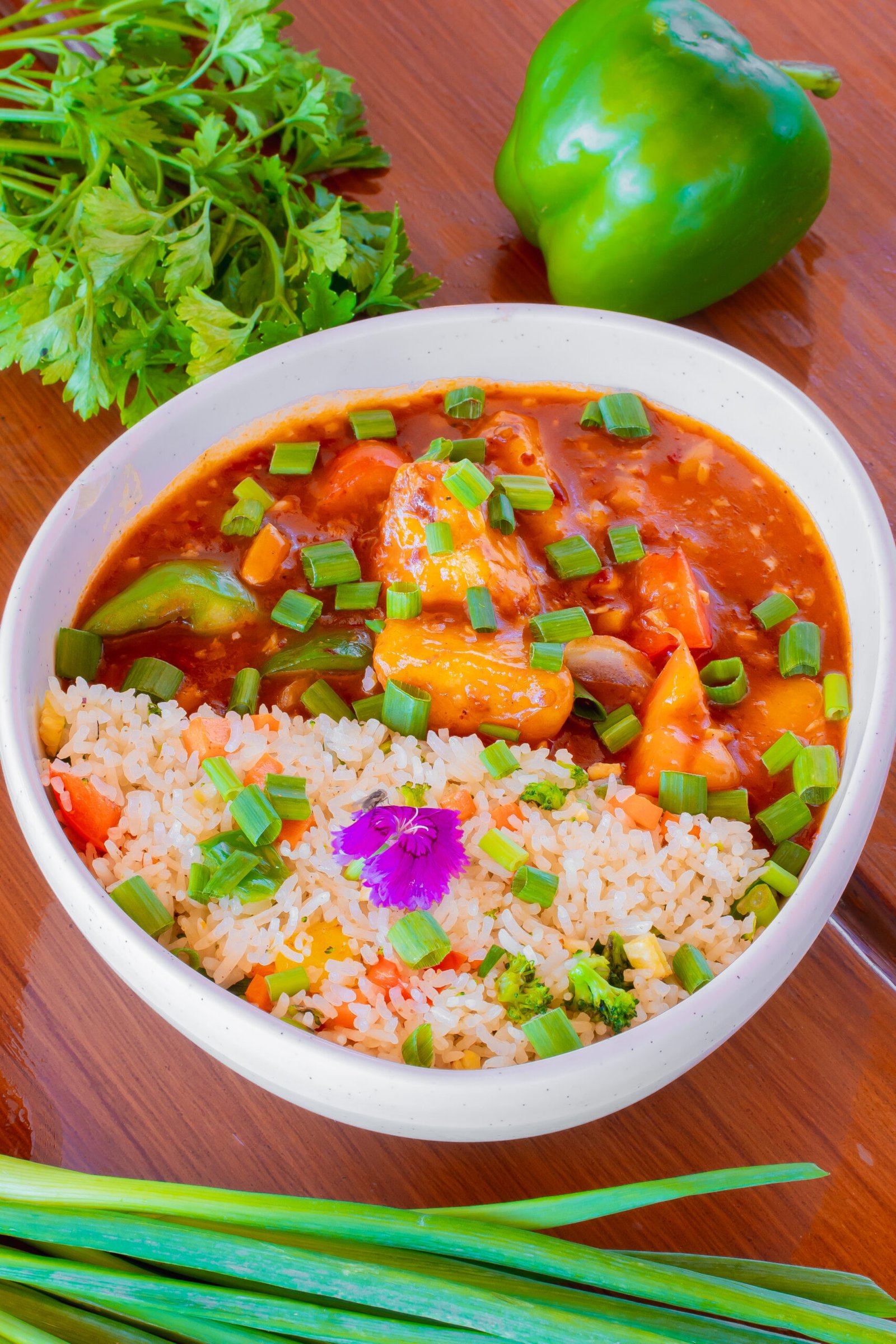 CHOICE OF CURRY WITH STEAMED RICE AND KHIMCHI SALAD