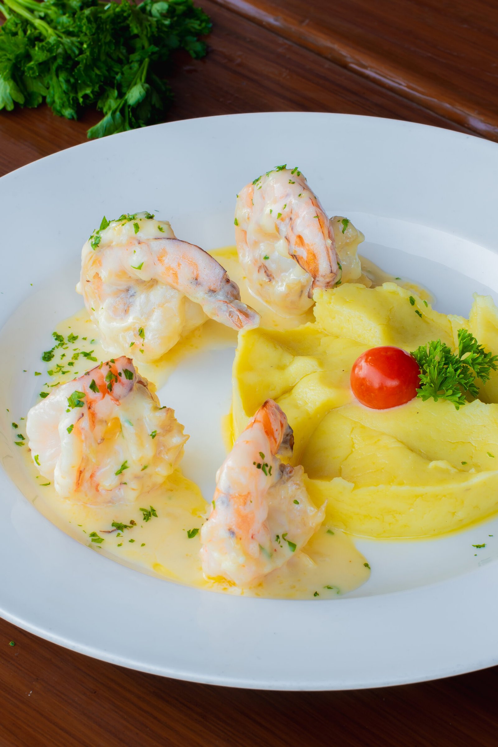 TIGER PRAWNS TOSSED IN BUTTER, BELL PEPPERS SPICY TOMATO SAUCE