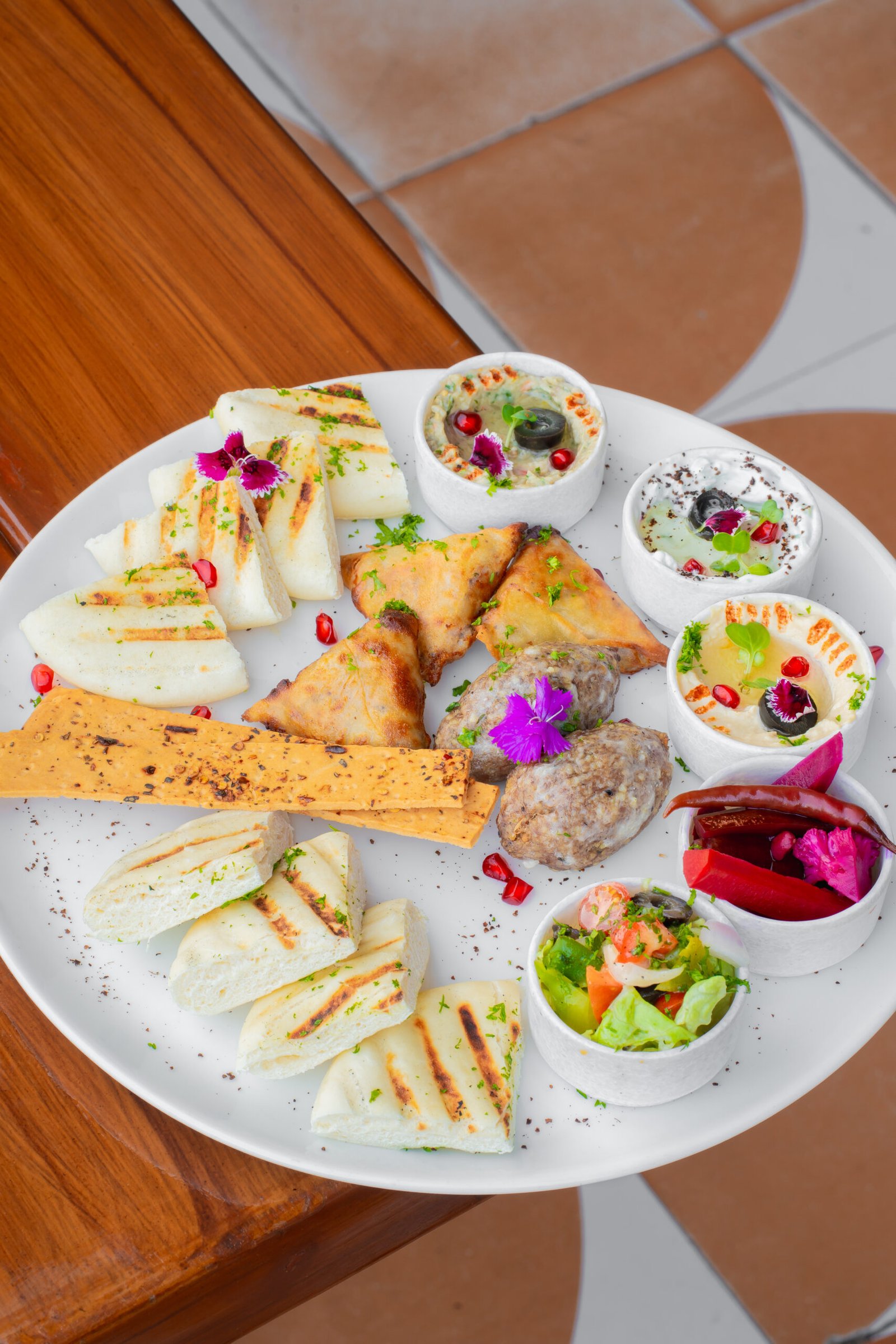 SERVED WITH LAMB KIBBEH, HUMMUS, BABA GANOUSH, CHICKEN SAMBOUSEK,