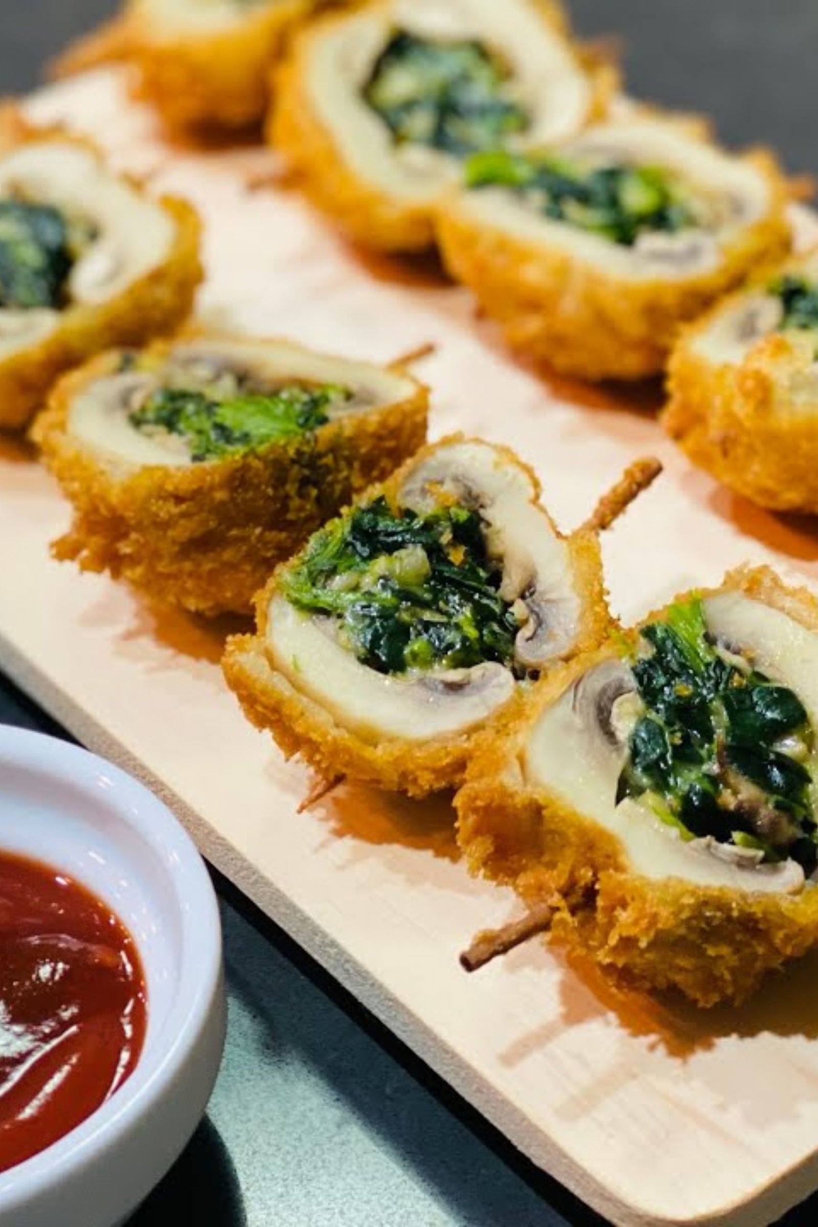 BUTTON MUSHROOMS STUFFED WITH CHEESE, BELL PEPPERS